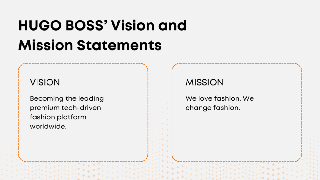 By establishing a clear picture of how the company should appear in the future, the vision statement serves as a North star, an illuminating beacon that guides the organization towards its intended destination. For example, in defining the group strategy, global fashion and lifestyle company Hugo Boss defined its vision statement as to “become the leading premium tech-driven fashion platform worldwide.”[iii]
